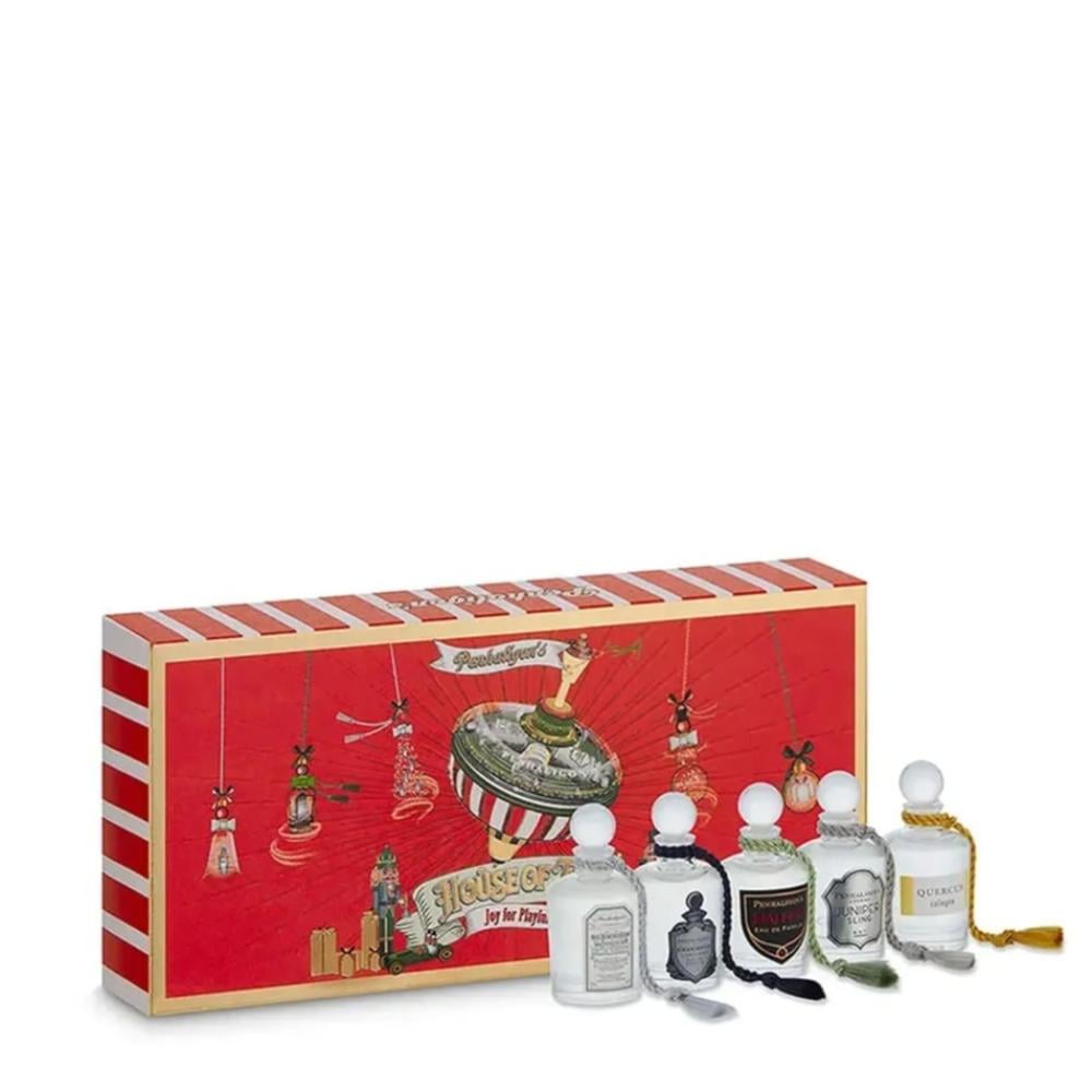 تُقدّم دار العطور البريطانية العريقة Penhaligon's مجموعة Jumping Jacks Mini Him Set، وهي تشكيلة فاخرة تضم خمسة من أشهر عطورها الرجالية بحجم 5 مل لكل منها. تُتيح هذه المجموعة فرصة مثالية لاكتشاف روائح متنوعة تناسب مختلف الأذواق والمناسبات.