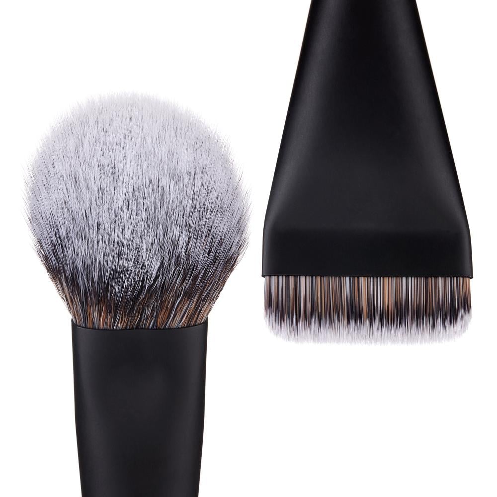 • طرف مسطّح مائل مخصص لدمج الكونتور الكريمي أو البودري بدقة تبرز ملامح الوجه.