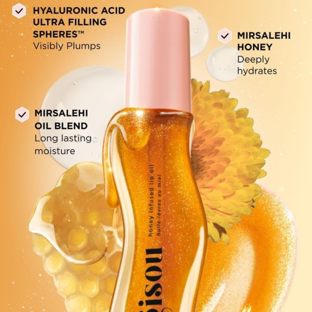 ملمع شفاه مدعم بعسل ميرصالحي وزيوت حديقة النحل لترطيب الشفاه بشكل مكثف والحفاظ على الرطوبة مع لمسة نهائية شديدة اللمعان وغير لزجة.
