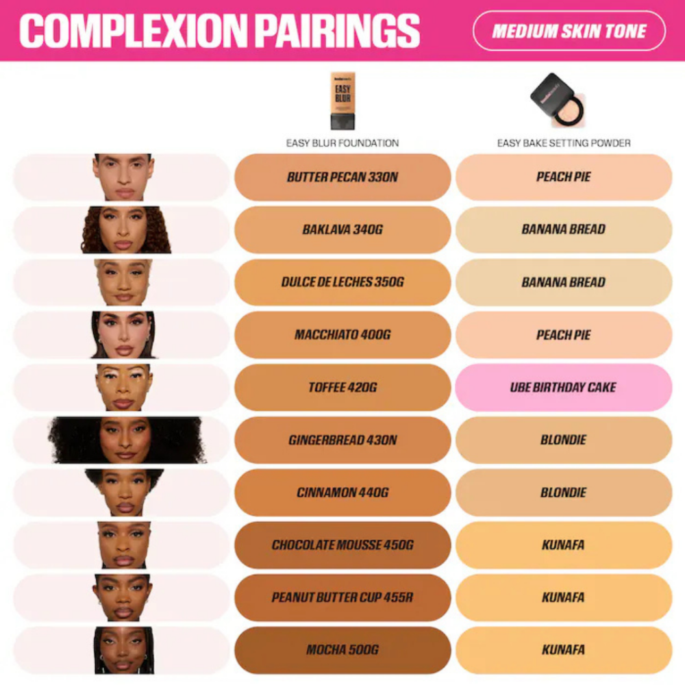 ابتكرت هدى بيوتي ثمانية ألوان مكتنزة بأصباغ لونية فائقة الدقة لضمان تلاؤمها مع جميع ألوان البشرة، حيث تعمل هذه المساحيق على تصحيح لون البشرة ببراعة وإبراز الملامح المختلفة للوجه تاركةً لمسة شفافة من اللون على البشرة - فسارعي بتجربة المكياج المخبوز لأن الخَبز لا يقتصر على الكعك فقط!
