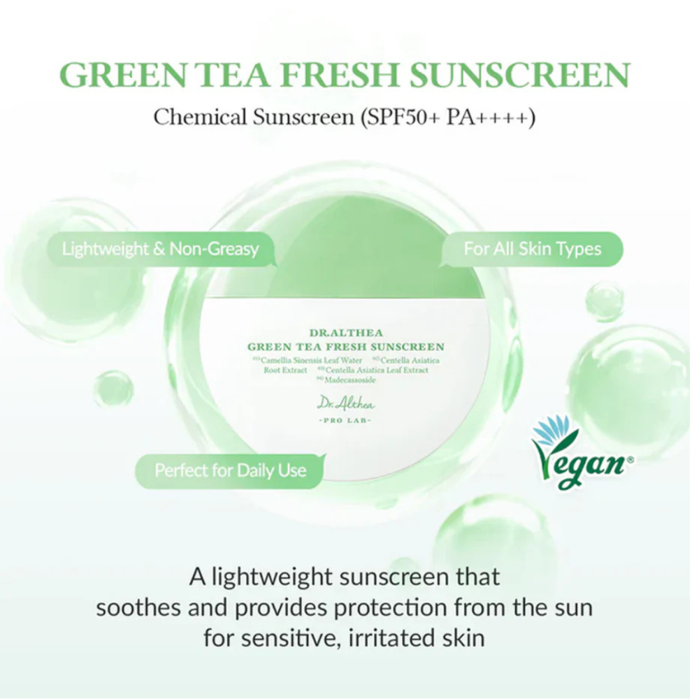 - ⭐ مميزات Dr. Althea Green Tea Sunscreen:حماية قوية من أشعة UVA/UVB بعامل +SPF 50 PA++++