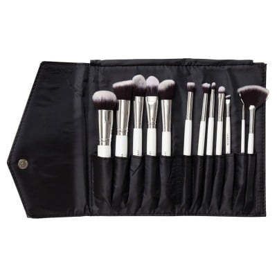 تحتوي على 12 فرشاة رائعة، بالإضافة إلى حافظة جلدية باللون الأسود لتضمن لك تخزين مناسب للفرش.