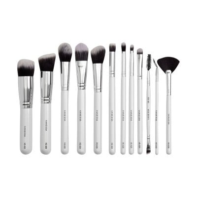 مجموعة كاملة من فرش المكياج الفاخرة، مثالية ومناسبة لأي نوع من منتجات المكياج السائلة أو البودرة.
