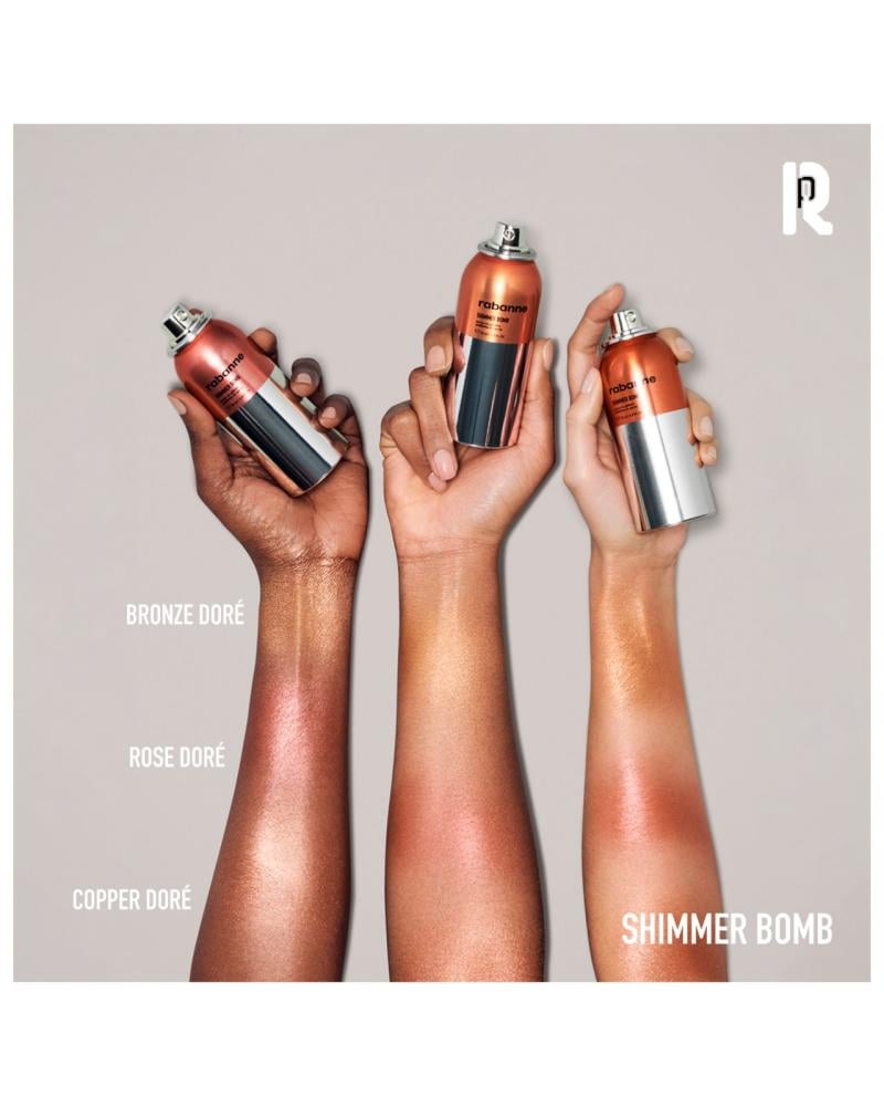 استعدي لتألقٍ لم يسبق له مثيل مع شيمر بومب، بخاخ الوجه والجسم من رابان. من لمسة لؤلؤية فاخرة إلى لمسة نهائية معدنية جريئة، يُمكّنكِ هذا البخاخ من تشكيل إطلالتكِ بما يتناسب مع شخصيتكِ الفريدة. شيمر بومب بخاخ مكياج نباتي رائد، مثالي لإبراز المناطق المرغوبة في وجهكِ وجسمك. يمنحكِ طبقة لؤلؤية ناعمة عاكسة للضوء، ما يتيح لكِ فرصة إبراز شخصيتكِ الفريدة. تركيبته خفيفة الوزن ومريحة، تجف بسرعة على البشرة، خالية من التلطخ والبقع
